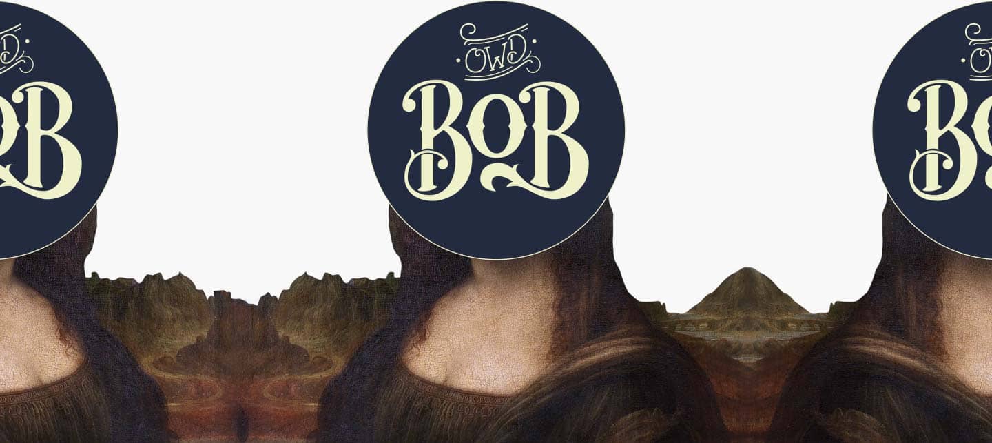 For the logo, we opted for hand-lettering, as a way of simulating the creative process of the artist. While Owd Bob is closed, the landing page features a picture of the Mona Lisa – the famous keeper of secrets – with the logo concealing her face.